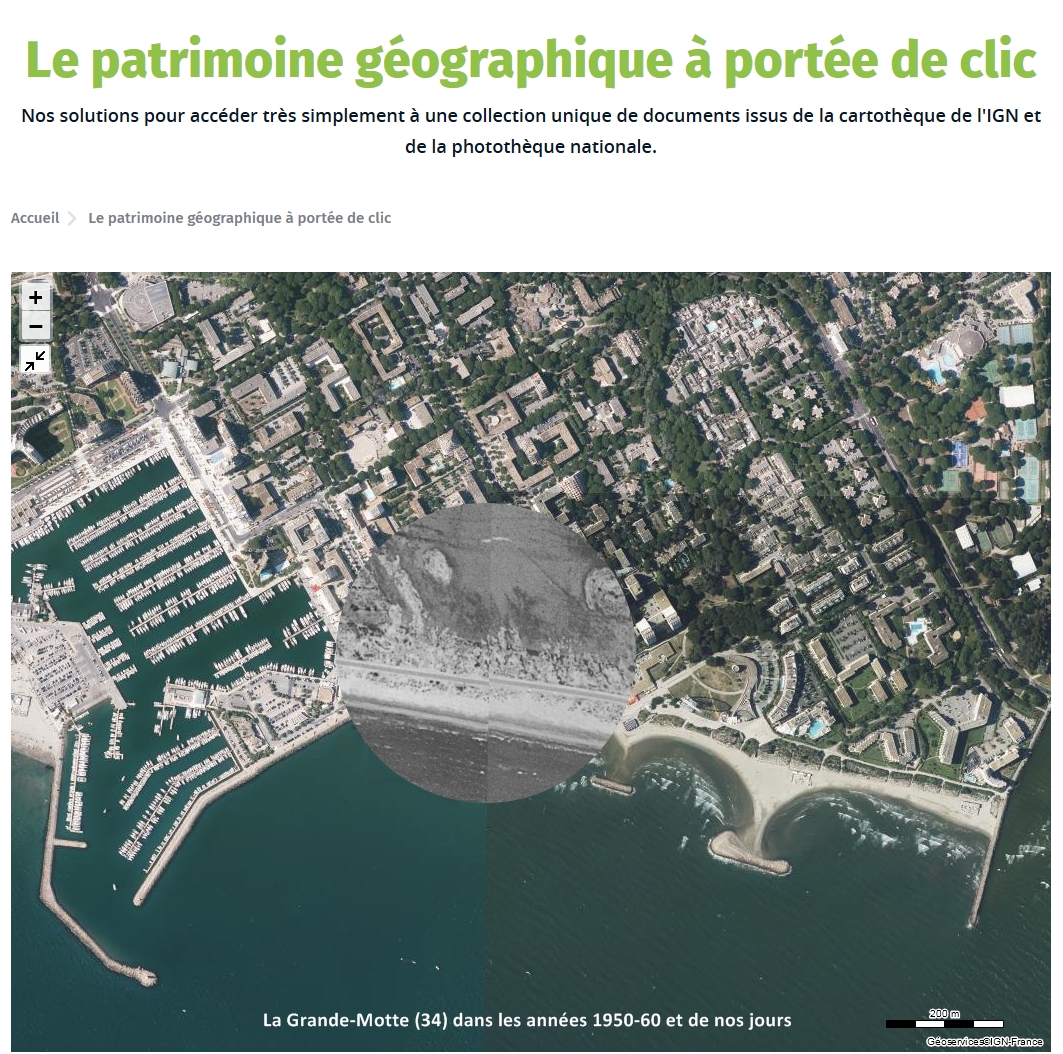 Remonter le temps, c'est la capsule temporelle en ligne pour naviguer librement dans les archives cartographiques et photographiques françaises et observer l'évolution des territoires. Explorez une bibliothèque de plus de quatre millions de documents dont les illustres cartes de Cassini (XVIIIe siècle), de l'état-major (XIXe) ou encore les premières cartes IGN. Et comparez-les avec les cartes et photographies aériennes les plus récentes pour visualiser les transformations des territoires au fil des siècles!